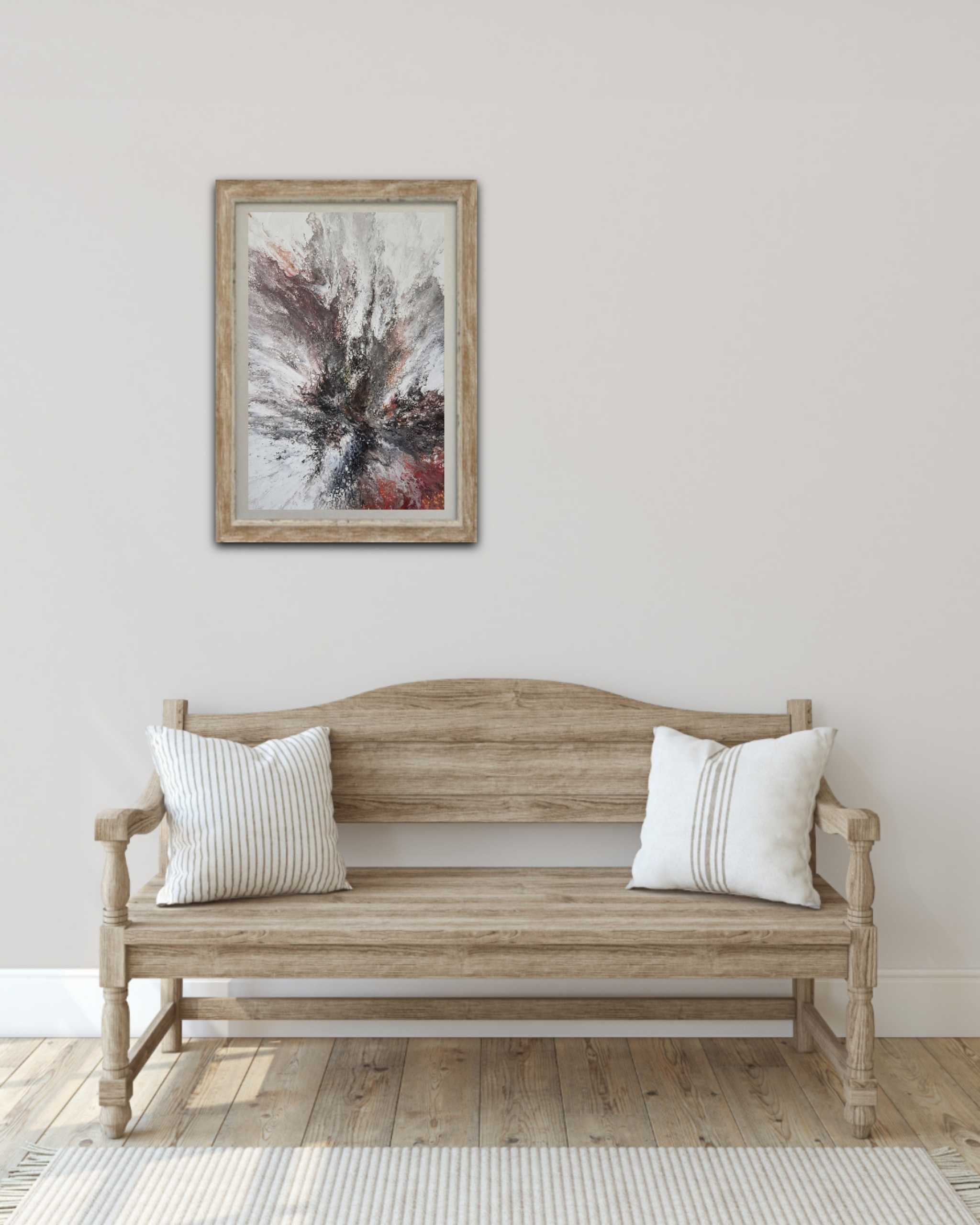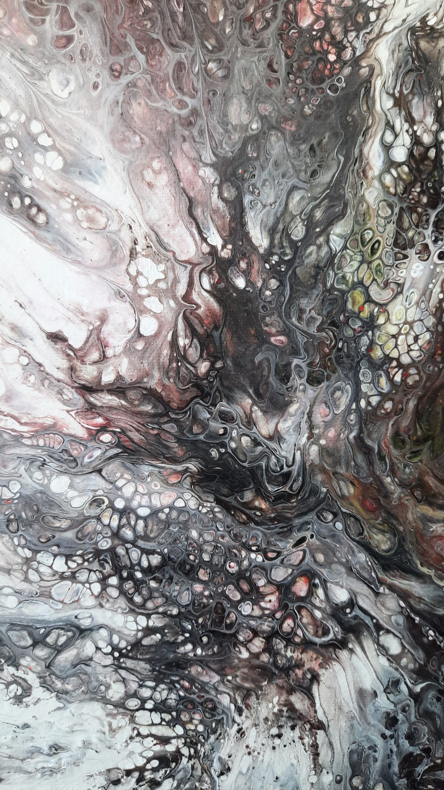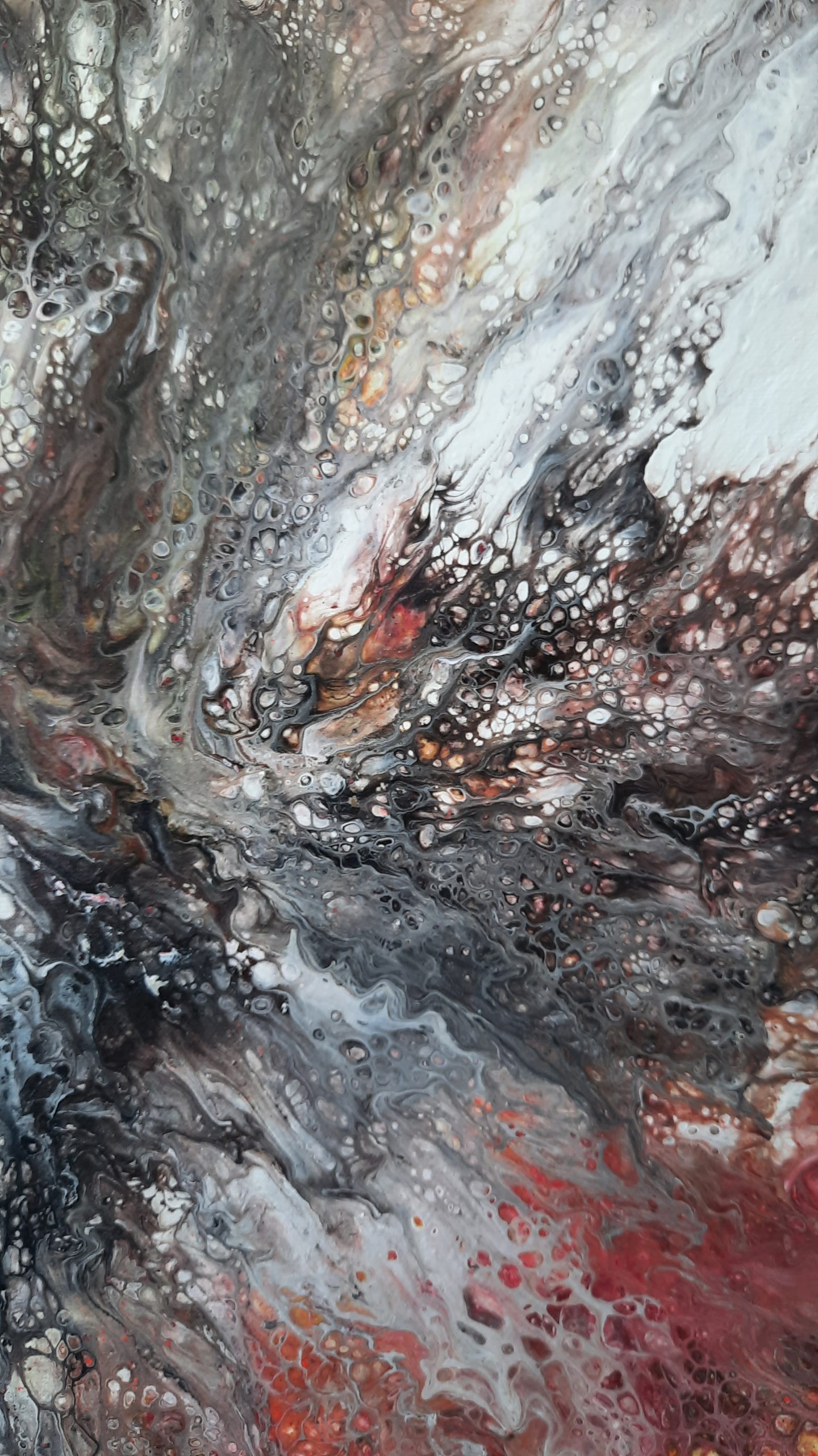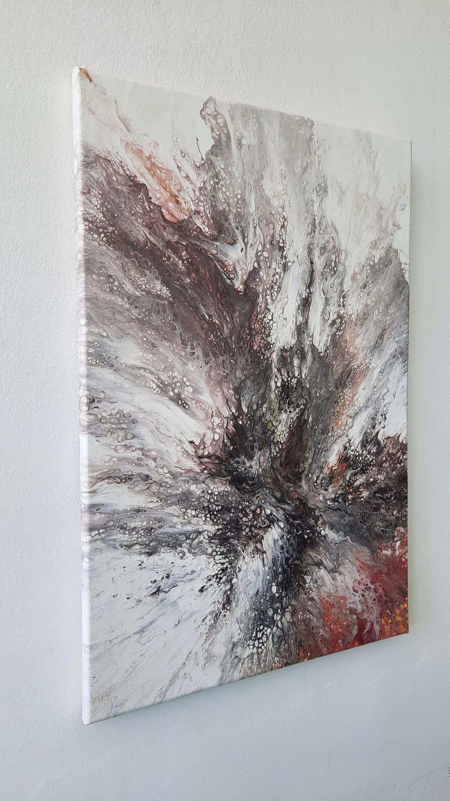 Original 60x40cm fluid art painting in red, black, white and yellow on thin canvas. Perfect decoration for a modern home.