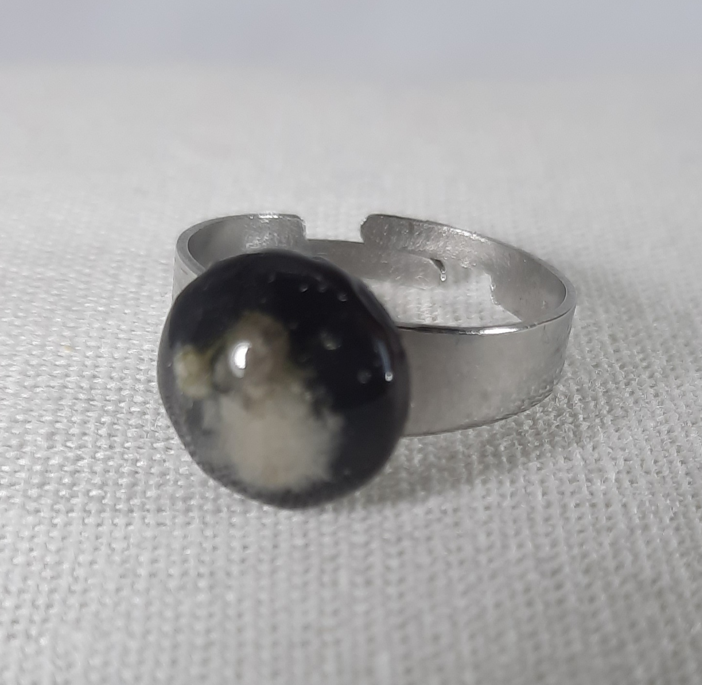 Black Epoxy Resin Ring with White Dried FlowerBlack Epoxy Resin Ring with White Dried Flower