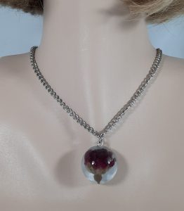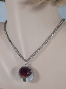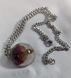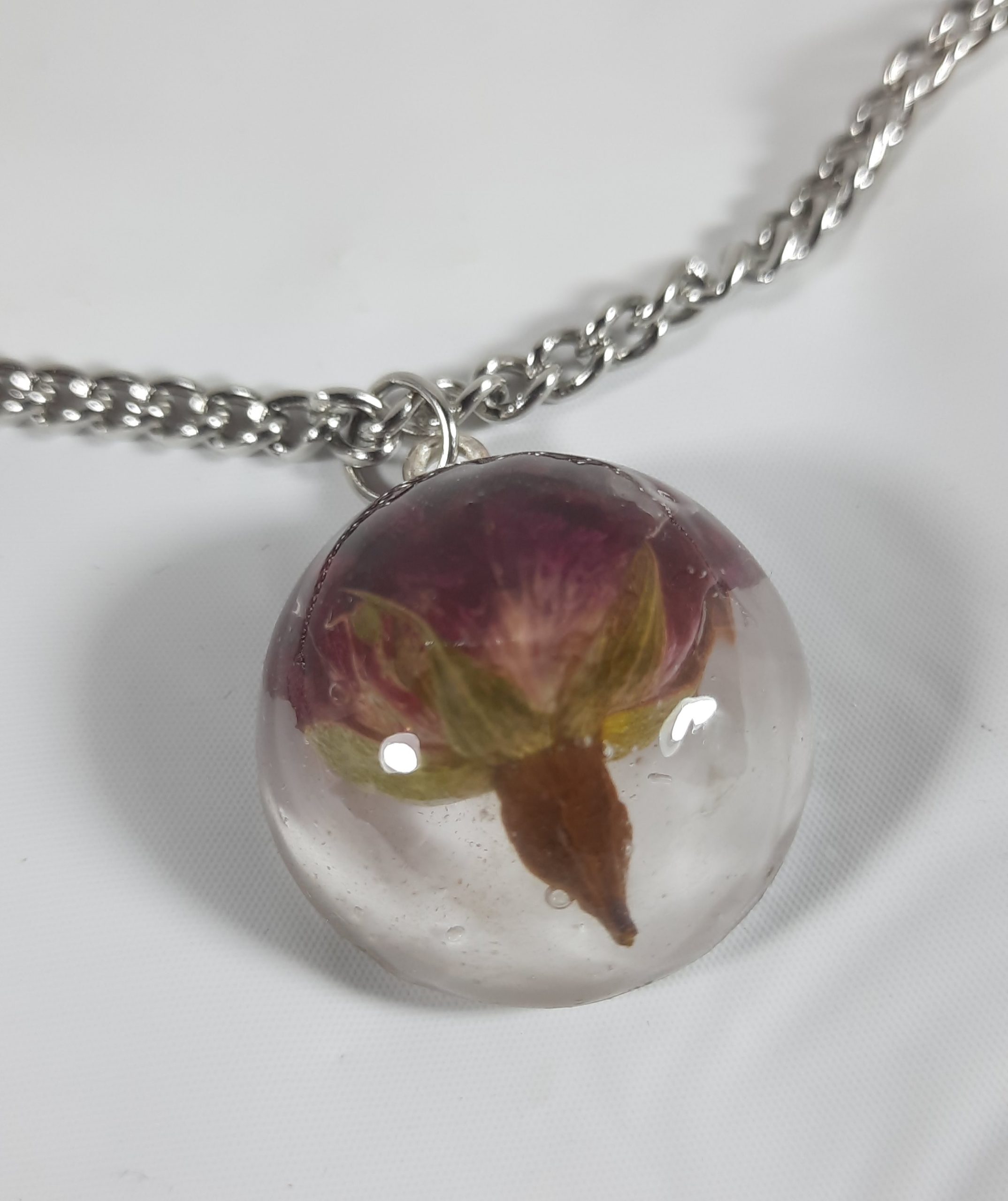 Necklace with Rose pendant. Unique necklace made of epoxy resin and stainless steel chain. The pendant contains a dried rose, which I picked from my garden and dried at home.