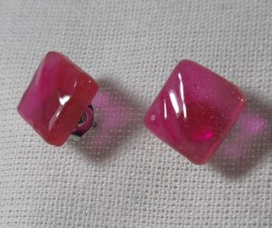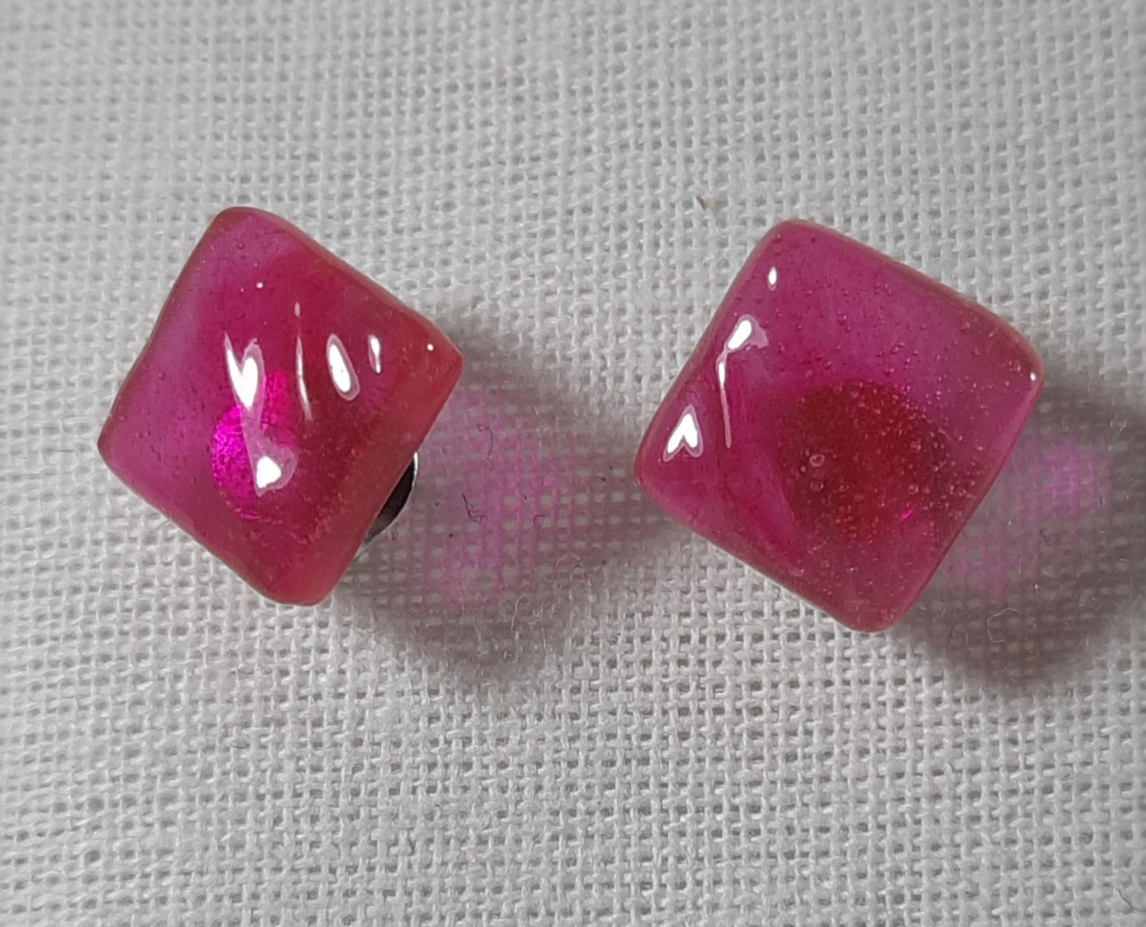 Unique, small, modest, elegant pink earrings made of epoxy resin. Part of the earring is slightly, barely visible embossed. Clasp pin is made of stainless steel. A beautiful, feminine earring.